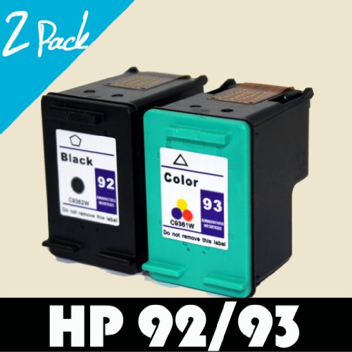 HP 92 C9362WN & HP 93 C9361WN Compatible Re-manufactured Combo Pack - 1 Black & 1 Color Ink Cartridges for PhotoSmart 3170 C3140 C3183 3173 C3150 C3188 7850 C3170 C3190 C3100 C3173 C3193 C3125 C317 C3194 C3135 C3180 PSC 1510v 1510xi 1507 1510 Deskjet 5420 5420v 5440 5440v 5440xi 5442 5443 Printer...