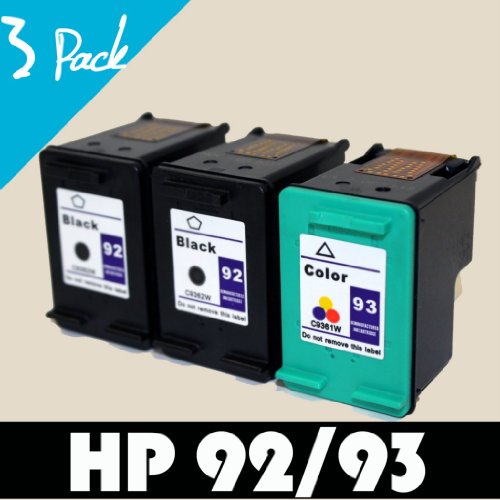 HP 92 C9362WN & HP 93 C9361WN Compatible Re-manufactured Combo Pack - 2 Black & 1 Color Ink Cartridges for PhotoSmart 3170 C3140 C3183 3173 C3150 C3188 7850 C3170 C3190 C3100 C3173 C3193 C3125 C317 C3194 C3135 C3180 PSC 1510v 1510xi 1507 1510 Deskjet 5420 5420v 5440 5440v 5440xi 5442 5443 Printer Best
